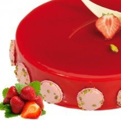 Брило глазурь-гель — прозрачная цветная блестящая глазурь со вкусом и ароматом клубники для украшения и отделки кондитерских изделий. Можно использовать глазурь в качестве яркой прослойки