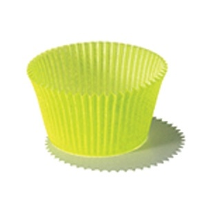 Гофрированная капсула из пергаментной бумаги круглой формы, зеленого цвета для упаковки кондитерских изделий, диаметр дна 50 мм, высота бортика 25 мм. Плотность бумаги 55 г/м2