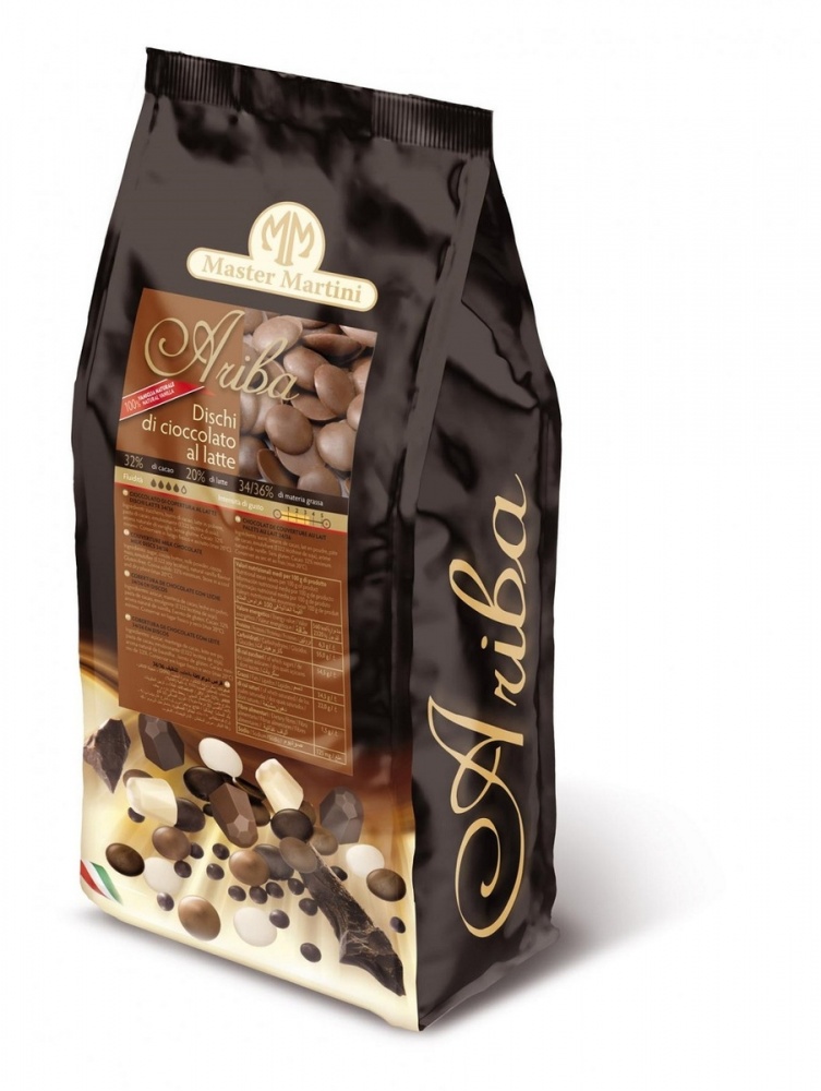 Итальянский молочный шоколад Ariba в форме дисков , содержание какао 32%, какао-масла 34-36%. Шоколад со структурированным составом с хорошим равновесием между молоком и какао, обеспечивающим не слишком агрессивную сладость . Текучесть высокая - четыре капли. Весь шоколад готов к употреблению без дополнительной обработки и добавления какао-масла. Профессионально и спользуется для отливки шоколадных форм, глазирования, приготовления шоколадного ганаша и пралине, шоколадных кофет и муссов.